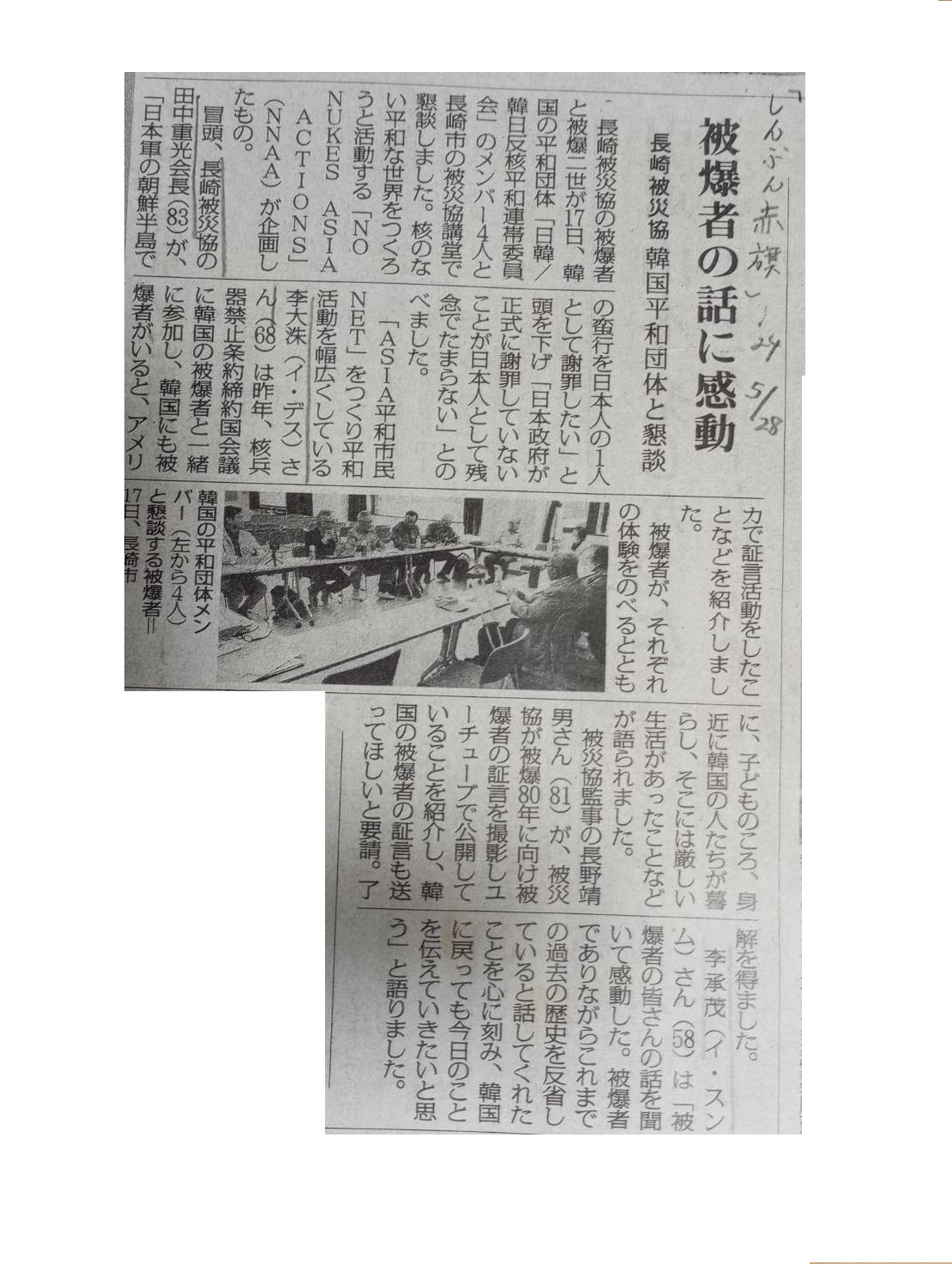 2024年5月17日(木)に長崎平和公園にある長崎被災協で実施された「長崎被爆者」と韓国のメンバーとの交流会が