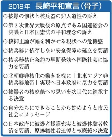 長崎・平和祈念像 郷土出身の彫刻家・北村西望氏の作で、1955年に完成。 像の高さ約9.7メートル、重さ約30トンの青銅製で、 「右手は原爆を示し、左手は平和を、顔は戦争犠牲者の冥福を祈る」 と作者の言葉が台座の裏に刻まれています。